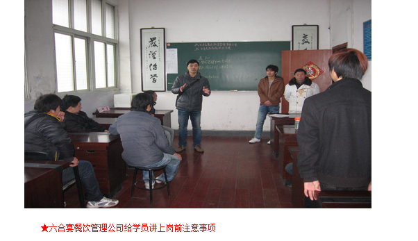 ?? 2012年3月6號(hào),武漢市六合宴餐飲有限公司負(fù)責(zé)人與武漢文昌高級(jí)職業(yè)學(xué)校簽訂校企聯(lián)合培訓(xùn)合同。當(dāng)天姚??舟、王金豐?、殷???俊?、朱先國?、胡? ?廣?、葉進(jìn)文?、孫海巖?、陳敬燁??、周貴林?、黃少波、?張??浩?十一位同學(xué)面試合格。正式成為武漢市六合宴餐飲有限公司員工
