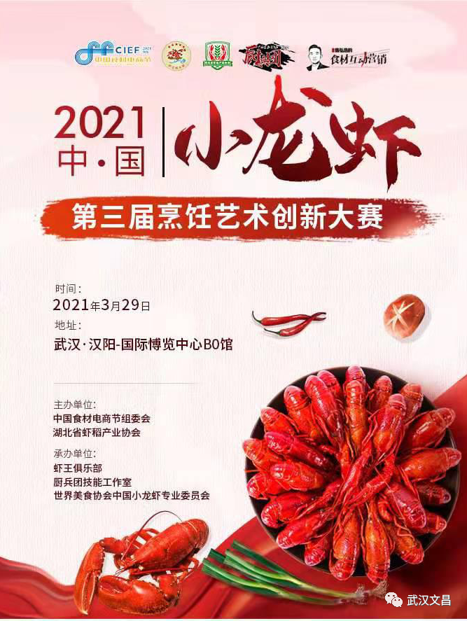 2021年中國(guó)小龍蝦第三屆烹飪藝術(shù)創(chuàng)新大賽將于3月29日在武漢國(guó)際博覽中心隆重舉行,屆時(shí)全國(guó)眾多專業(yè)大師和民間高手將同臺(tái)競(jìng)技,相互切磋交流。
